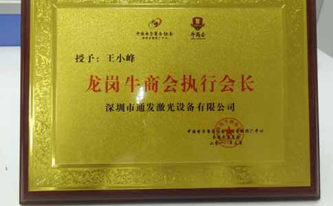 2018年3月23日,第九屆中國電子商務(wù)深圳十大牛商頒獎典禮在龍崗維也納國際酒店盛大舉行。深圳市通發(fā)激光設(shè)備有發(fā)公司王小峰總經(jīng)理出席了頒獎典禮,并與九位來自不同行業(yè)的企業(yè)家共同獲得了深圳賽區(qū)十大牛商榮譽(yù)稱號。
