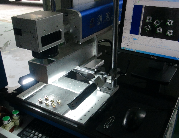現(xiàn)在新技術(shù)不斷涌現(xiàn),通發(fā)激光最近新研制的視覺定位激光打標(biāo)機(jī),可實(shí)現(xiàn)產(chǎn)品只要在激光打標(biāo)掃描振鏡的加工范圍內(nèi),即可實(shí)現(xiàn)準(zhǔn)確打標(biāo),即每次的位置即使不一樣,加工位置也沒有問題。本技術(shù)運(yùn)用了視覺定位原理,先對(duì)產(chǎn)品進(jìn)行模板制定,確定產(chǎn)品的外形,保存為標(biāo)準(zhǔn)模板,在正常加工時(shí)對(duì)所需加工的產(chǎn)品進(jìn)行拍照,由計(jì)算機(jī)進(jìn)行快對(duì)比模板進(jìn)行對(duì)比及位置定位,調(diào)整后即可對(duì)產(chǎn)品進(jìn)行準(zhǔn)確加工。所加工的產(chǎn)品外形可以是圓形、方形、非規(guī)則形狀都可以識(shí)別,這種工藝特別適合小產(chǎn)品,可免除定位料盤、固定夾具的加工,大大節(jié)省了激光打標(biāo)加工周期。同時(shí)也適合流水線產(chǎn)品移動(dòng)時(shí),進(jìn)行的在線激光打標(biāo)加工。