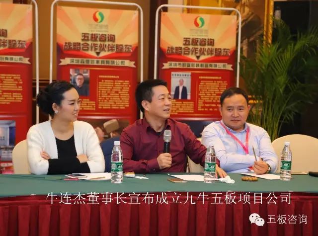 五板咨詢2014年成立至今,從無到有,從小到大,經(jīng)歷了兩年的艱苦創(chuàng)造摸索,五板如今也生根發(fā)芽如雨后春筍,9家項目公司遍布中國大地。華商30期班長——深圳市前海微加控股有限公司牛連杰董事長現(xiàn)場宣布和五板咨詢成立九牛五板項目公司,成為我們五板咨詢第10家項目公司!