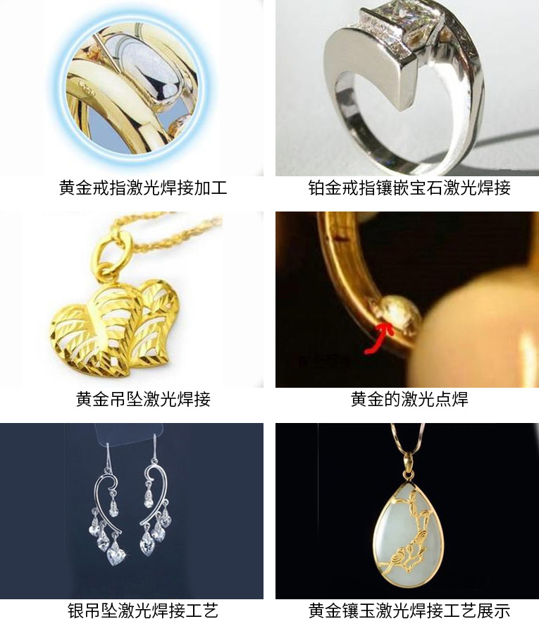 8、可激光焊接各種金屬材質:金,銀,鉑金,銅,鈦,不銹鋼等各種金屬材料。包括:戒指,耳環(huán),手鏈,項鏈,領帶夾,袖口等珠寶首飾,金屬飾品的激光焊接。