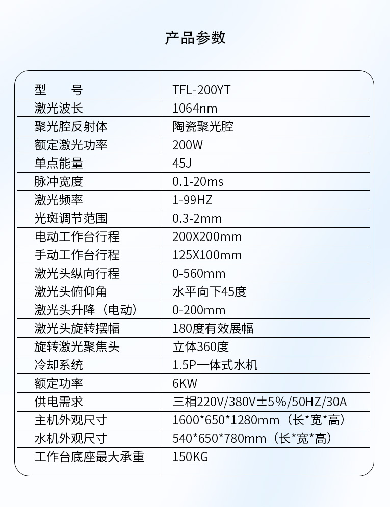通發(fā)激光一體式模具激光焊機TFL-200YT/TFL-400YT是一款多種功能融合一體的新型模具激光焊接機,針對特大型塑料模具激光焊、中型注塑模具激光燒焊、小型塑膠模具激光補焊、壓鑄模激光補焊具等各類模具可實現(xiàn)超精密修復,幫您解決大型汽車模具修復難題,不需要模具移動,電動工作臺與立體旋轉(zhuǎn)激光頭完美結(jié)合,操作桿控制運動移動實現(xiàn)輕松激光修復大型模具,同時也保留了傳統(tǒng)手動工作臺超精密修復模具功能。