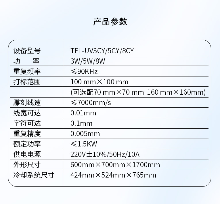 通發(fā)紫外激光打標機技術(shù)參數(shù):