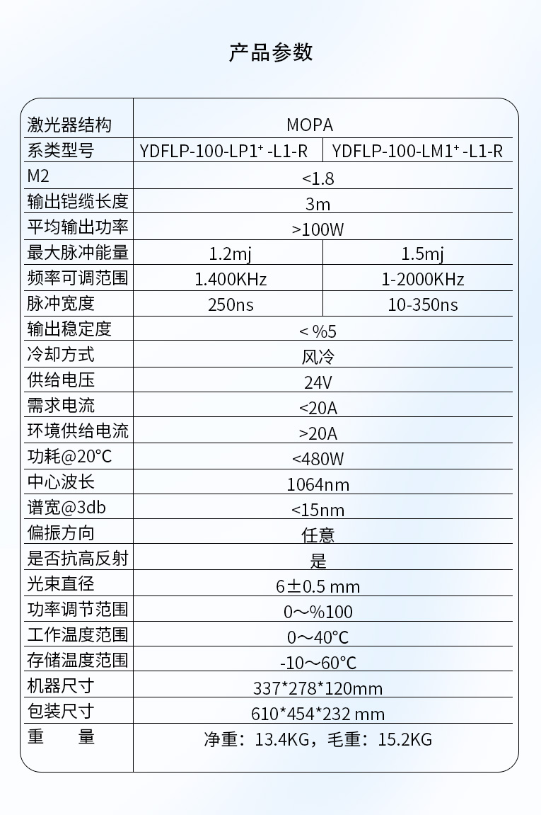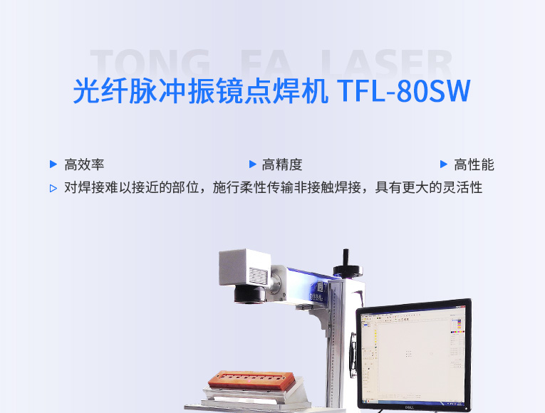 通發(fā)激光TFL-80SW振鏡激光焊接機(jī),采用主振蕩器功率放大 MOPA(Masrer Qscillator Power Amplifier)結(jié)構(gòu),實(shí)現(xiàn)脈沖寬度和頻率獨(dú)立可調(diào)的特點(diǎn),在對脈寬和頻率進(jìn)行改動的情況下仍保持較高且穩(wěn)定的峰值功率輸出,適用于電池、小五金等多個行業(yè)的激光打標(biāo)、激光焊接應(yīng)用。