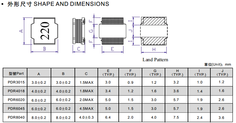 PDR6045-680MT功率電感屬風華電感 說明:超薄; 開放式結構; 適合表面貼裝