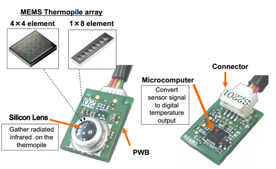 · 通過采用熱電堆的方式,可檢測熱電傳感器無法檢測的靜止人物,最適用于人類檢測和非接觸式測量的傳感器。