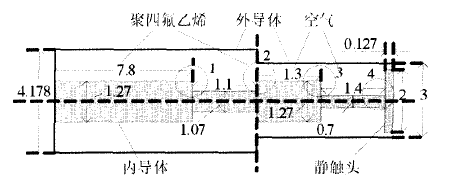 2 . 2 SMA接口及相連同軸結構參數的提取SMA接口內外導體間填充聚四氟乙烯作為絕緣介質,與SMA接口相連的同軸部分應用空氣作