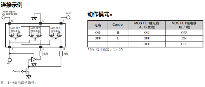 由三個MOS FET繼電器組成1組常開觸點(SPST-NO) + T開關(guān)功能。