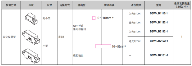 歐姆龍限定反射型傳感器B5W應用在縫紉機中,這個系列的傳感器具有哪些特點呢,如下: