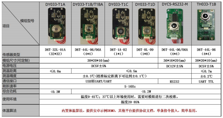 我們同時(shí)也可以給您提供一整套的測(cè)溫解決方案!實(shí)現(xiàn)購買即可使用,無需二次開發(fā)!我們可以根據(jù)客戶需求,搭載1*1,1*8, 4*4, 32*32歐姆龍測(cè)溫傳感器,實(shí)現(xiàn)檢測(cè)距離0.5-0.8米測(cè)溫,測(cè)溫精度可以達(dá)到±0.2℃(校準(zhǔn)標(biāo)定距離下可達(dá)到±0.1℃)。也可以滿足客戶的多種串口通訊方式(1)USB轉(zhuǎn)UART/UART;(2) RS232 ;(3) UART TTL。模塊資料如下: