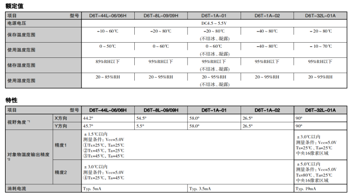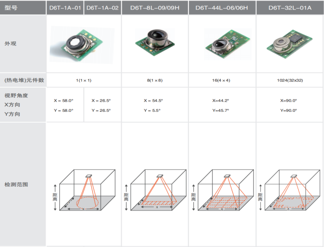 非接觸溫度傳感器D6T系列的選型參數(shù):