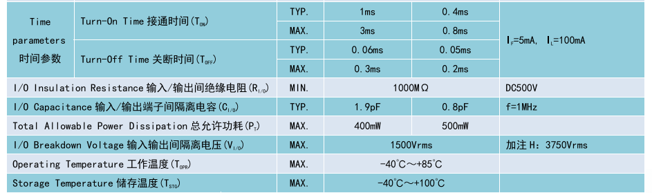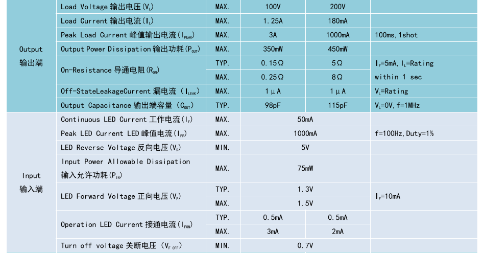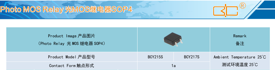 (Relay 光MOS 繼電器 SOP4),Product Model產(chǎn)品型號(hào):BCY215S、BCY217S,Contact Form 觸點(diǎn)形式:1a,Ambient Temperature 25'C,測(cè)試環(huán)境溫度 25°℃