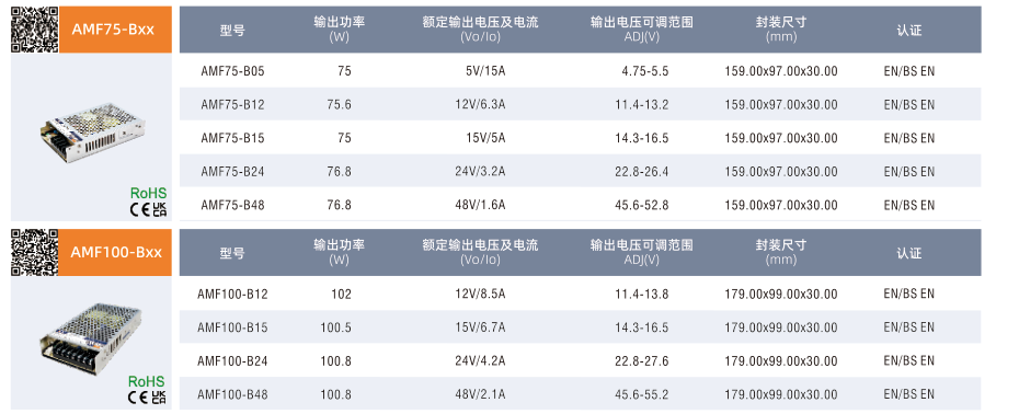 AMF75/100/150/200-Bxx, ·輸入電壓范圍:85-305VAC/120-430VDC ·交直流兩用(同一端子輸入電壓) ·工作溫度范圍:-30°Cto +70℃ ·主動式 PFC ·4000VAC高隔離電壓 ·高效率,高可靠性 ·輸出短路、過流、過壓、過溫保護(過流恒流限制) ·EMI滿足 CISPR32/EN55032 CLASS B