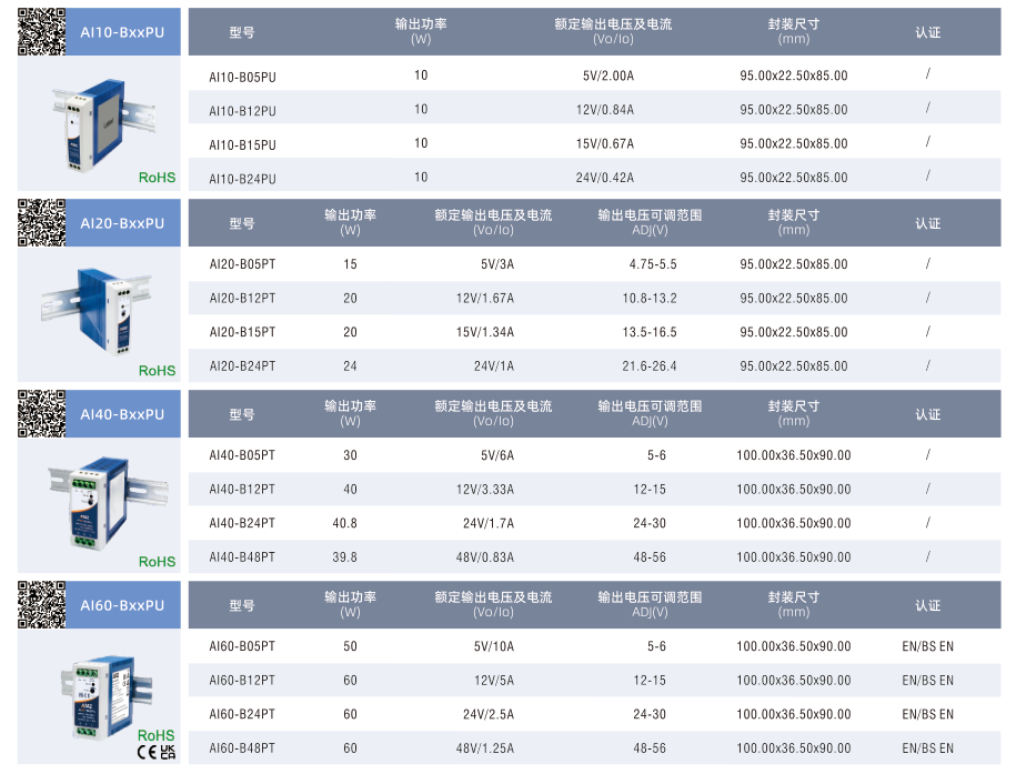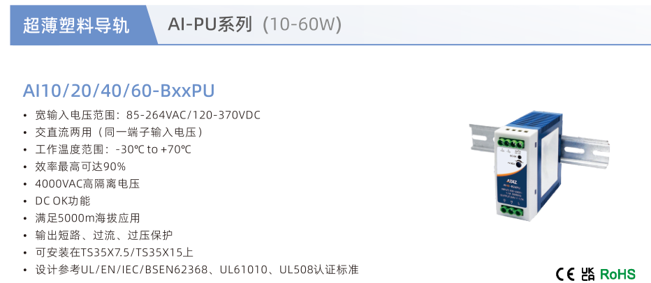 開(kāi)關(guān)電源超薄塑料導(dǎo)軌AI-PU系列10-60W