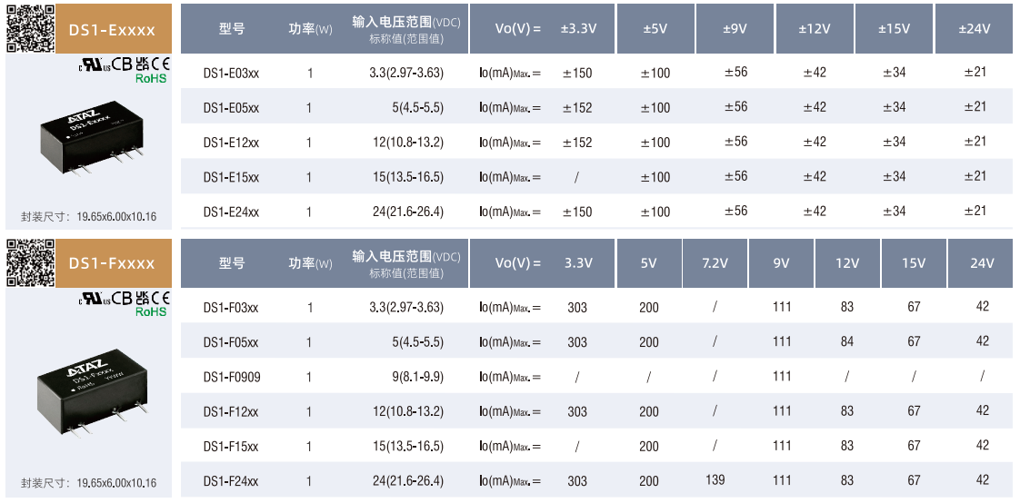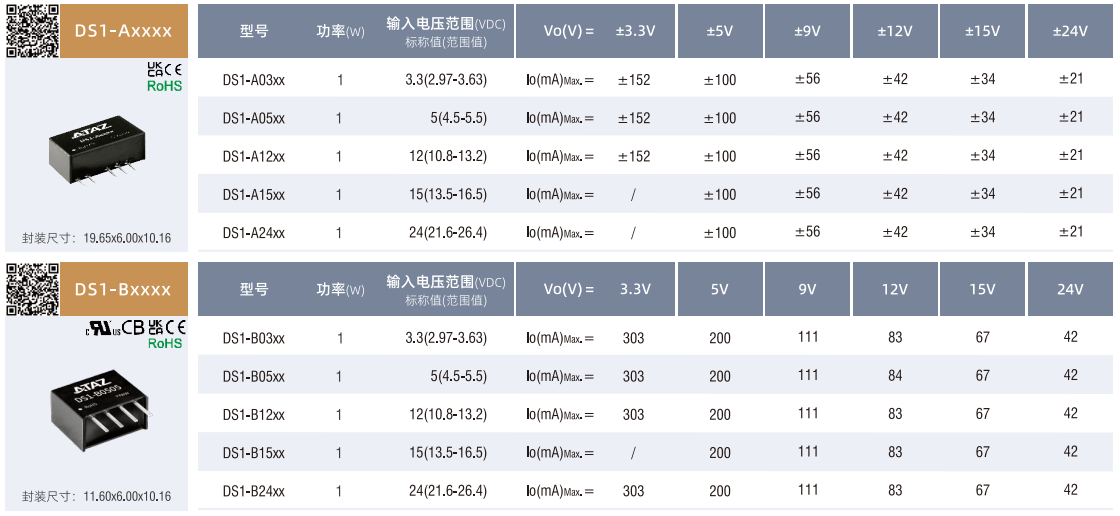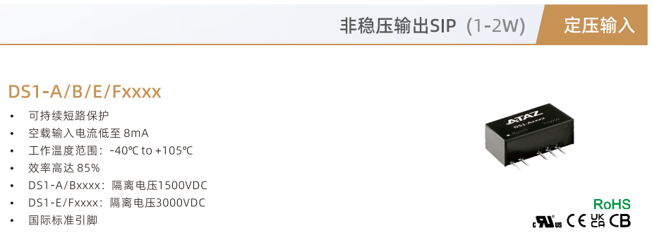 DC/DC隔離電源DS1-B0505非穩壓輸出SIP(1-2W)