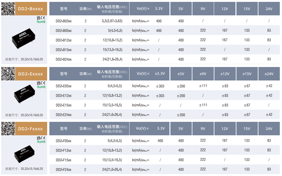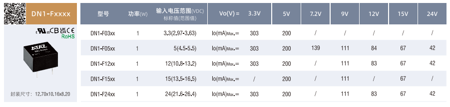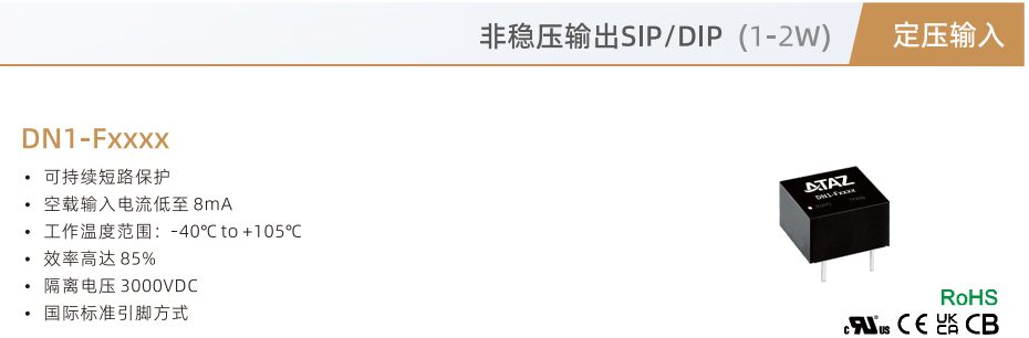 DC/DC隔離電源DN1-FxxxX非穩壓輸出SIP/DIP(1-2W)