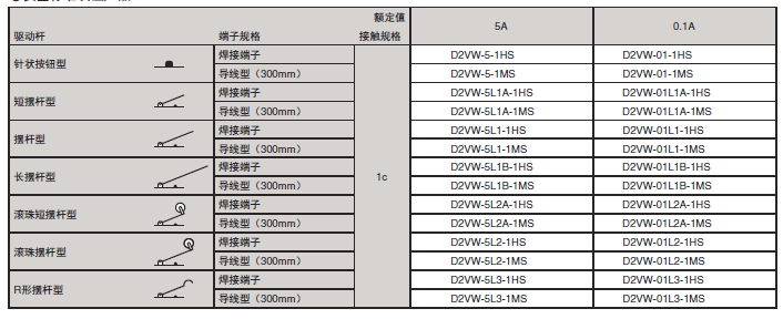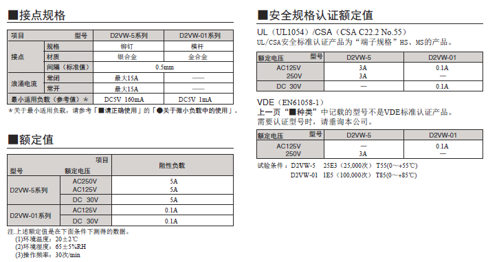 D2VW-5 密封型基本開關 密封型(符合IP67:除端子部 以外)的小型基本尺寸 采用環氧樹脂來確保穩定的密封性。可以在會淋水或多塵埃的地方使用。 內部結構采用廣受好評的V系列的結構,實現高精度和長壽命。安裝也和V系列相同。 可在汽車、農業機械、大型家電、辦公設備等有耐環境性要求的場合使用。