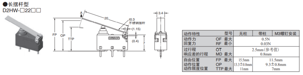 社內(nèi)較小尺寸、可進(jìn)行可靠開(kāi)關(guān)的長(zhǎng)行程型開(kāi)關(guān) 主體部分尺寸為前代產(chǎn)品的78%,有利于設(shè)備的小型化。 沒(méi)有擺桿也同樣使用方便的長(zhǎng)行程規(guī)格 (OT參考值 :1.4mm) 不含對(duì)環(huán)境有害的物質(zhì),導(dǎo)線類(lèi)型也實(shí)現(xiàn)了無(wú)鉛化。